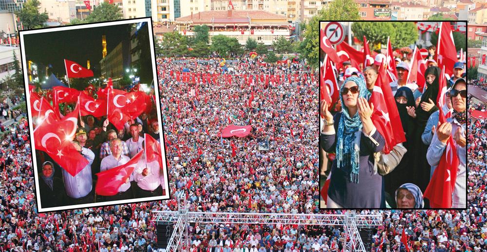 FETÖ'cü askerlerin kalkıştığı hain 15 Temmuz darbe girişiminin ardından günlerce nöbet tutan Türkiye, pazar günü Yenikapı'da yapılan ve 5 milyon vatandaşın katıldığı mitingle nöbetini tançlandırdı. Renkli görüntülere sahne olan miting, bütün siyasi liderleri, sanat ve spor camiasından ünlüleri ve şehit yakınları ile gazileri ağırladı. Yenikapı'daki mitingle eş zamanlı olarak tüm illerin meydanlarında da büyük mitingler düzenlendi. Kurulan dev ekranlardan Yenikapı'daki konuşmaların dinlendiği mitinglerde FETÖ terörüne lanet yağdı, darbeci askerlerden hesap sorulması istendi. Sadece Türk bayrağının dalgalandığı meydanlarda polis geniş güvenlik önlemleri aldı.