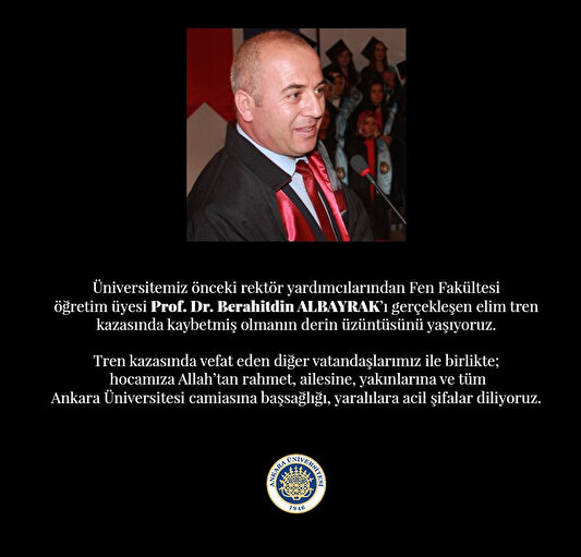Ankara Üniversitesi, Prof. Albayrak’ın hayatını kaybettiğini şu mesajla duyurdu: