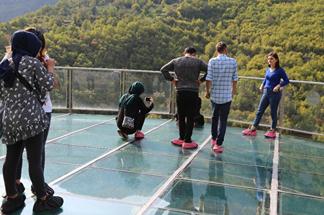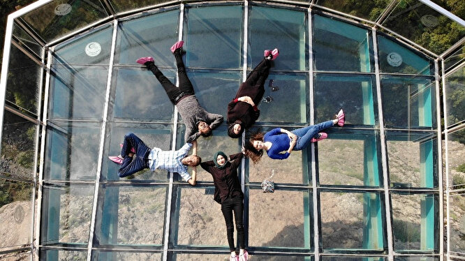 Cam seyir terasının üzerinde ziyaretçiler ilk deneyimlerinde heyecan ve tereddüt yaşarken bir süre sonra da eşsiz doğa manzarasının keyfini çıkarıyor. Ziyaretçilerden Ezger Kaşka, şu şekilde açıklamada bulundu: