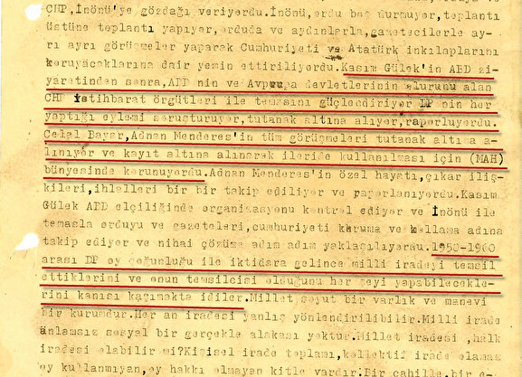 Halkın tercihlerinin önemli olmadığını belirten İnönücü istihbarat teşkilatı, “Esas milli irade, günümüz şartlarında askerî güçtür” diyor ve ekliyor: “Her zaman halk iradesi doğrudur demek yanlışın en başlangıcıdır. Seçim sonucu ne millî, ne genel irade seçimde oy kullanmış insanların tercihidir. Egemenlik kavramı üzerine kurulu teori olduğu için doğru tercihi yansıtmayabilir. Esas milli irade, günümüz şartlarında askerî güçtür. Millî hedeflerin ele geçirilmesinde yegâne belirleyici olan güç askerî güçtür” diyerek istemedikleri kişilerin iktidar olmasının önündeki darbeci güç olarak durduklarını itiraf ediyorlardı. “Cumhuriyet’in temel ilkelerini koruma kollama” cümlesinin ardına sığınan bu karanlık odaklar her zaman milletle savaştı ve savaşmaktan da vazgeçmiş değil.