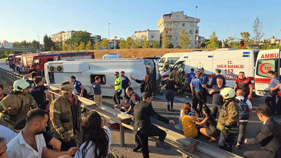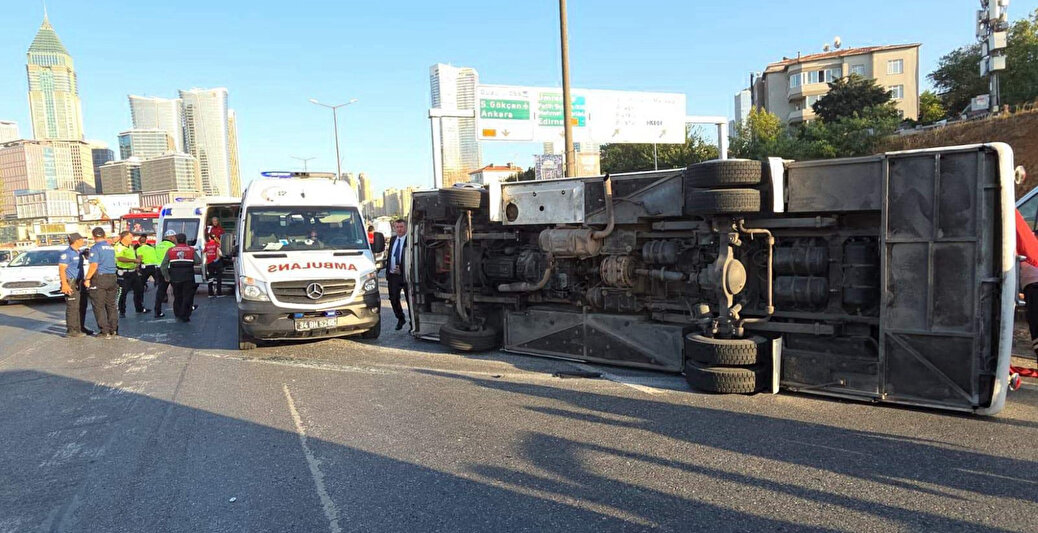 Ümraniye TEM Otoyolu'nda servis aracı devrildi. Yaralıların olduğu kaza bölgesine çok sayıda sağlık ekibi sevk edildi.