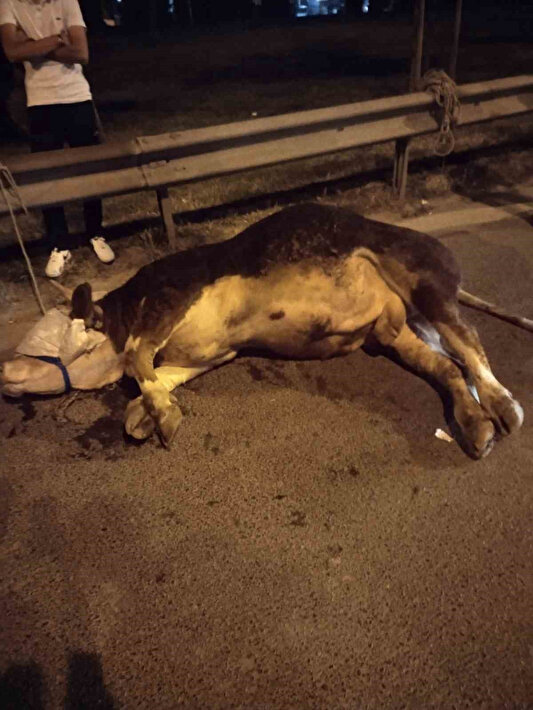 Yolda hareketsiz kalan boğa, çevredeki vatandaşların yardımıyla emniyet şeridine alındı. Yaralı hayvan, sahipleri tarafından başka bir kamyonete yüklenerek yoldan kaldırıldı. Yaşanan olay nedeniyle bölgede kısa süreli trafik yoğunluğu oluştu. Boğanın kaldırılmasının ardından trafik akışı normale döndü.