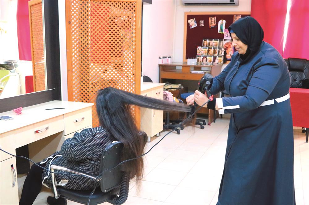4 çocuk annesi 42 yaşındaki Adle Reşit ise “Eşim ciddi sağlık sorunları nedeniyle çalışamaz durumda olduğu için evimin hem annesi hem babasıyım” dedi. Gittiği kuaförlük kursundan sonra bir kuaför salonu açan Reşit, Suriyeli bayanlara hizmet veriyor.