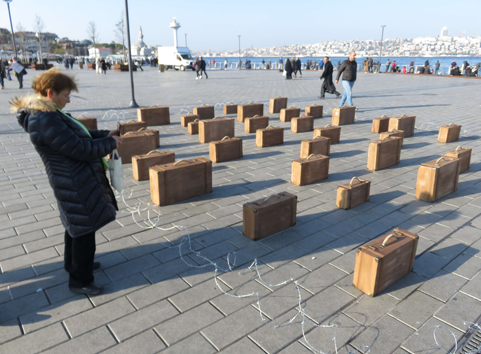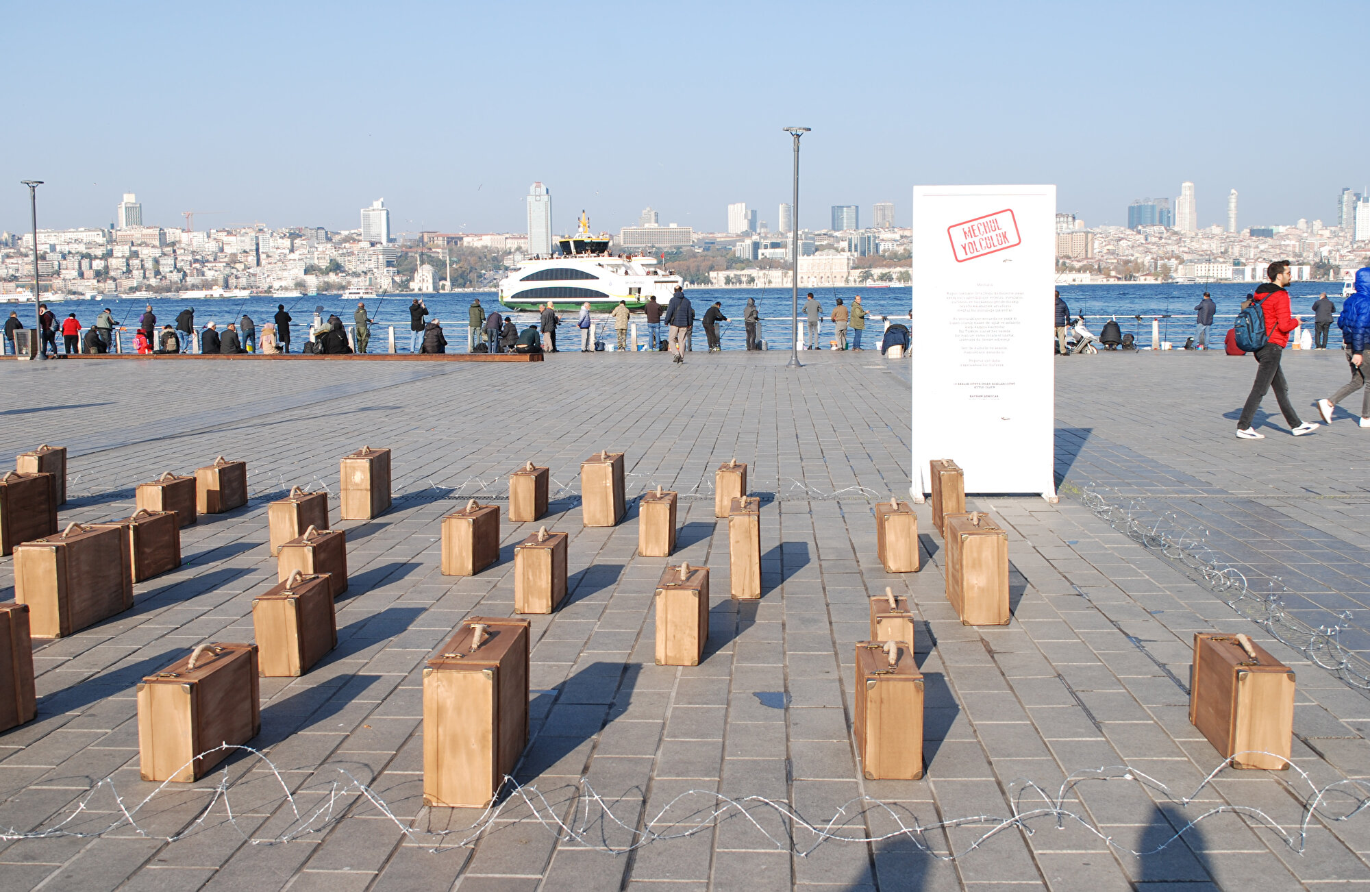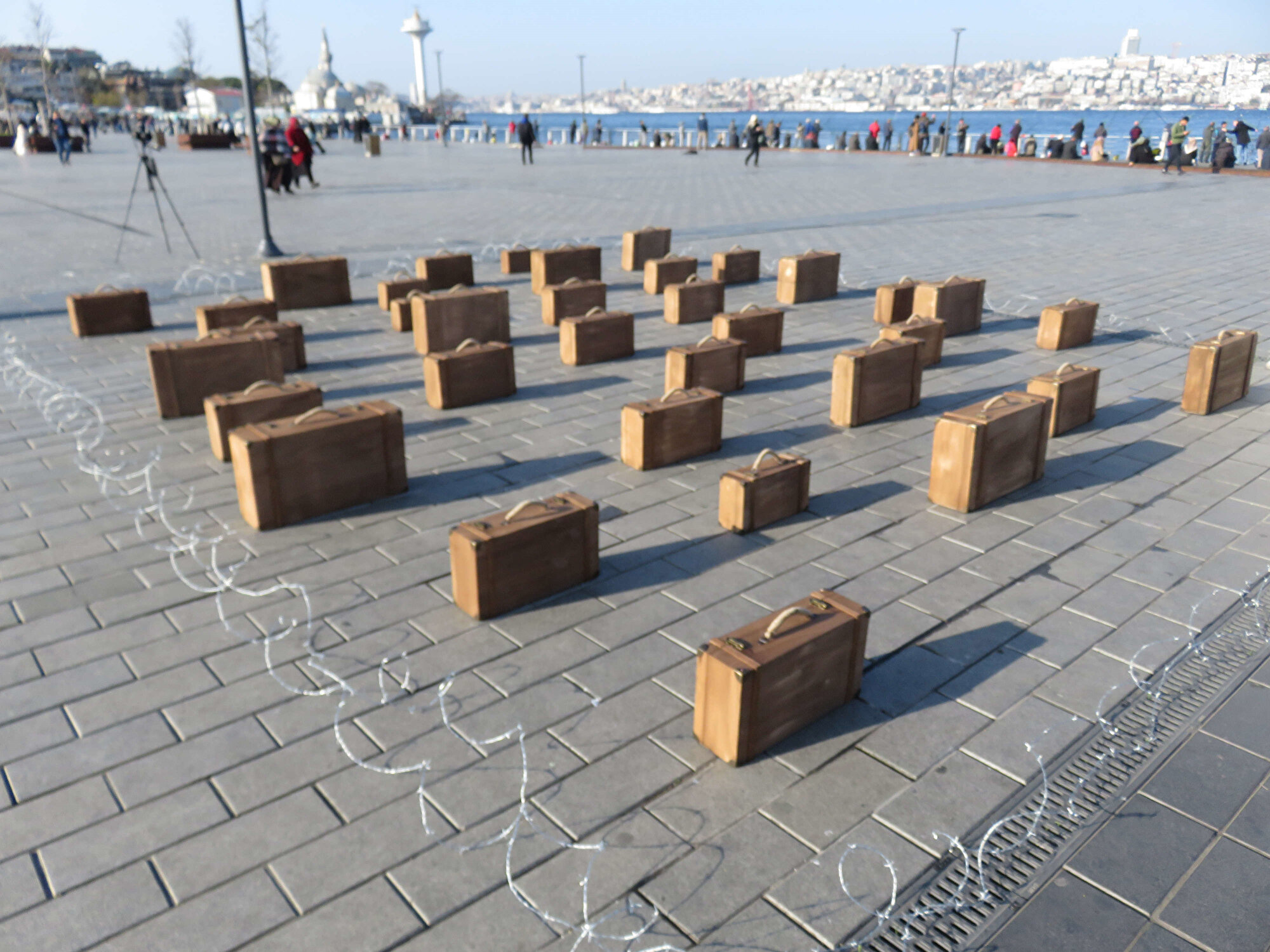 - Üsküdar Meydanında düzenlenen etkinlikte, savaş ve diğer nedenlerden dolayı ülkelerini terk etmek zorunda kalan insanların valizleri, temsili olarak tel örgüler içerisinde sergilendi.