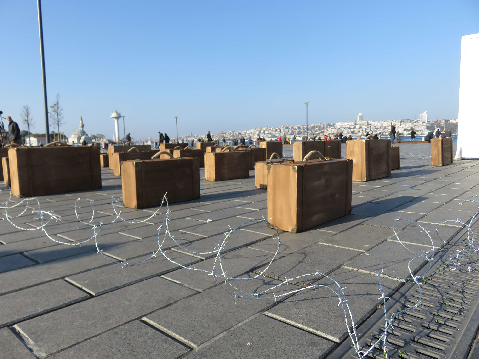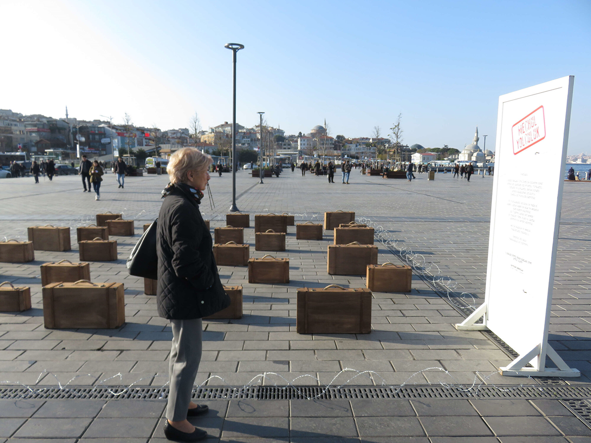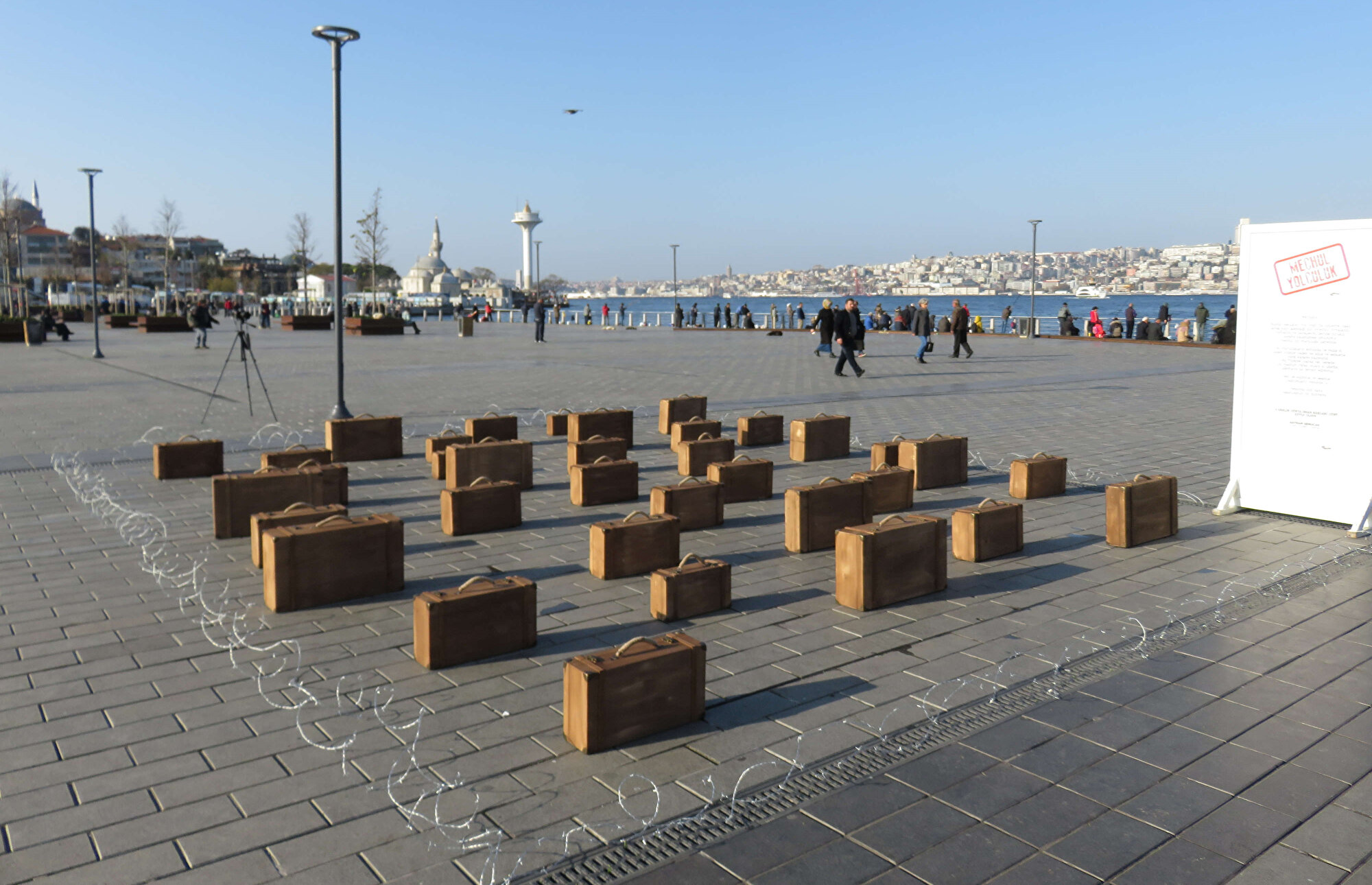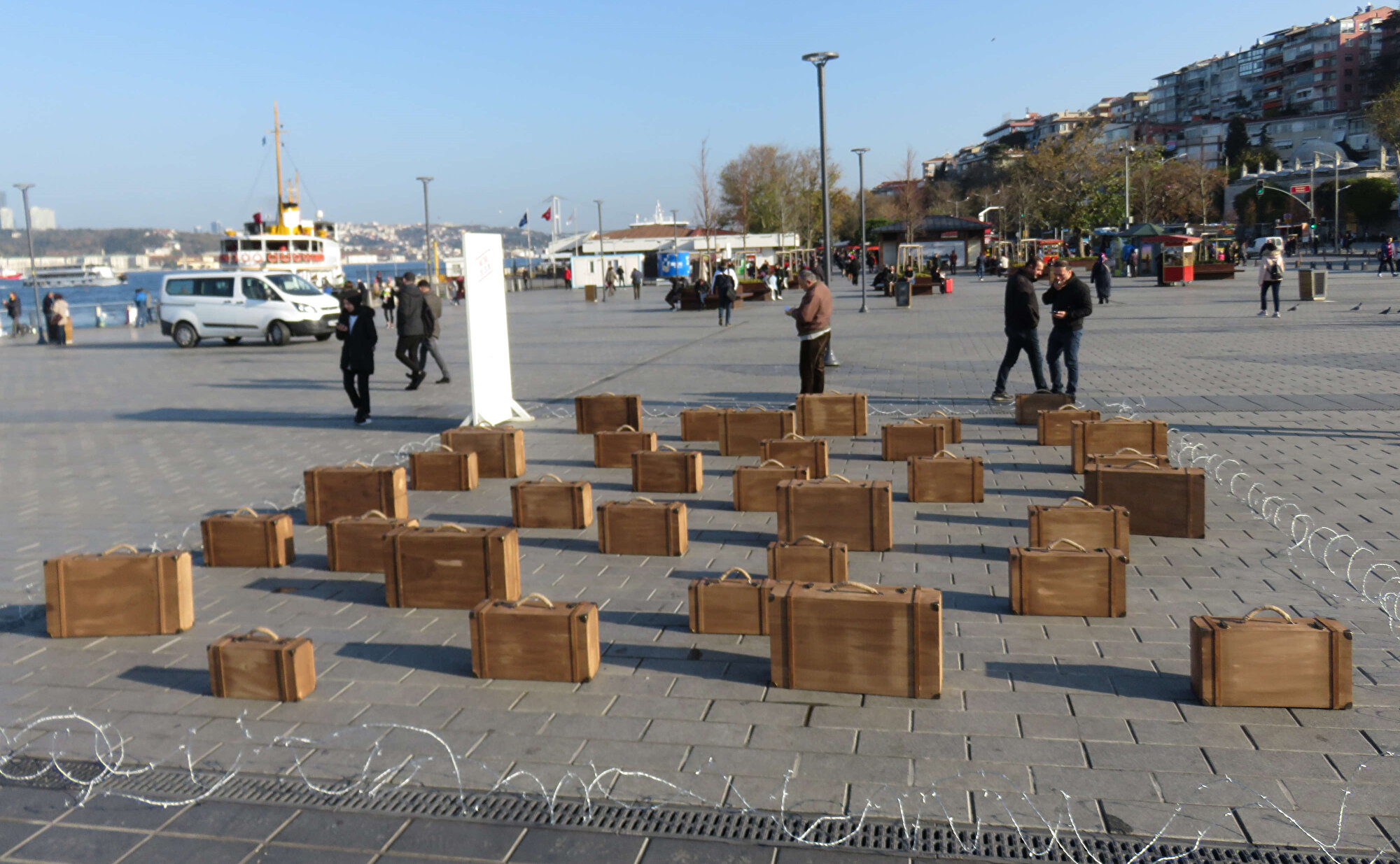 - Üsküdar Meydanında düzenlenen etkinlikte, savaş ve diğer nedenlerden dolayı ülkelerini terk etmek zorunda kalan insanların valizleri, temsili olarak tel örgüler içerisinde sergilendi.