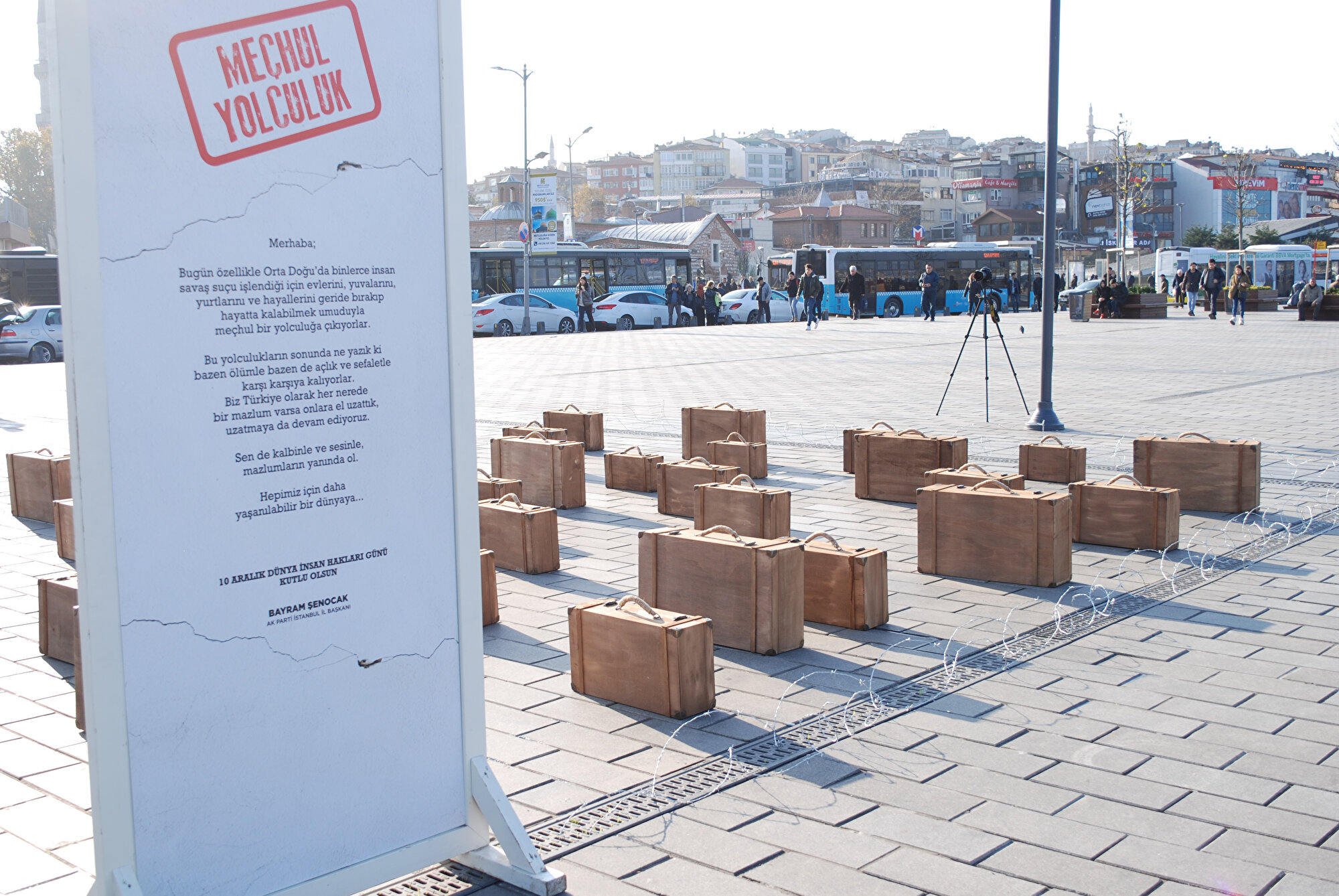 "10 Aralık Dünya İnsan Hakları Günü" nedeniyle, AK Parti İstanbul İl Başkanlığı'nca farkındalık etkinliği düzenlendi. Üsküdar Meydanı'nda düzenlenen etkinlikte, savaş ve diğer nedenlerden dolayı ülkelerini terk etmek zorunda kalan insanların valizleri, temsili olarak tel örgüler içerisinde sergilendi.