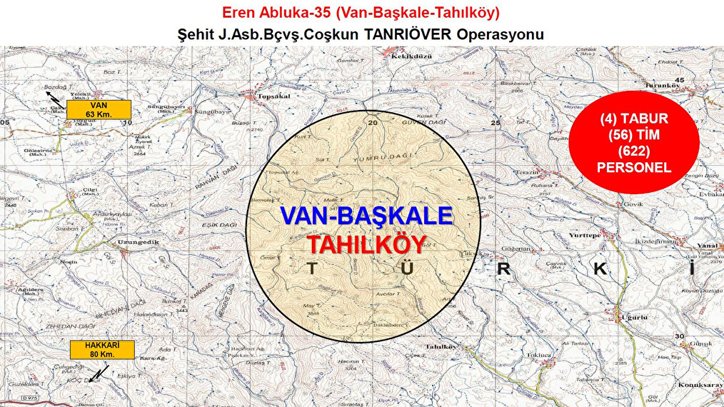 PKK terör örgütünü ülke gündeminden çıkarmak ve bölgede barındığı değerlendirilen teröristleri etkisiz hale getirmek maksadıyla, Van’da Eren Abluka-35 (Van-Başkale-Tahılköy) Şehit J.Asb.Bçvş. Coşkun Tanrıöver Operasyonu başlatıldı.