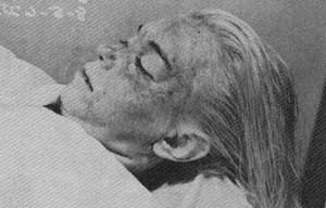 Cesedi 6 Ağustos 1962 günü Los Angeles Devlet Hastanesi Morgu'na kaldırılan ünlü yıldıza burada otopsi uygulanmış ve ölüm nedeni tesbit edilmeye çalışılmıştı. İşte bu fotoğraf da tam o gün, patolog işini bitirdikten hemen sonra Los Angeles Emniyet Müdürlüğü fotoğrafçısı tarafından çekilmiş.