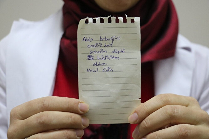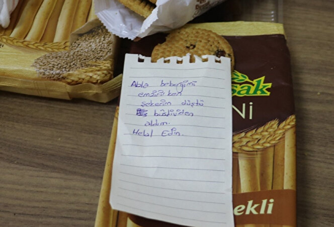 Ebe Nilgün Göksu, bisküviden yiyen anneye bisküviyi helal ederek, "Çarşamba günü ailesi ile beraber aşı için dört aylık bir bebeğimiz geldi. Aşısını yaptık. Daha sonra bebek ağladığı için ailesi rahatlatmak istediğini söyledi. Emzirme odasına yönlendirdik. Biz de o sırada çok yoğunduk. Bir şeyler atıştıralım derken geldik emzirme odasında atıştırmalıklara baktık ki şöyle bir not gördük. Demiş ki, ‘Abla bebeğimi emzirirken şekerim düştü. Bisküviden aldım. Helal edin’ tabii ki helal olsun. Böyle bir notu görünce çok muştu olduk. Bu yiyecekleri zaten hem kendimiz hem de aileler için aldık" şeklinde konuştu.
