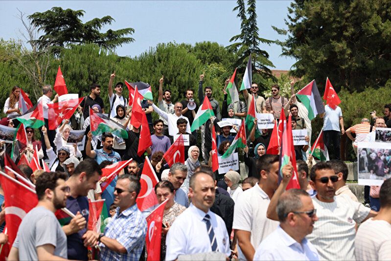 Yürüyüş sırasında konuşan YTÜ Makine Fakültesi Endüstri Mühendisliği Öğrencisi ve YTÜ Uluslararası Öğrenciler Kulübü Başkanı Filistinli Anas El Saleh, ailesinin yaşadığı 1948 göçünü anlatarak, “Ben buraya sadece bir öğrenci olarak çıkmadım. Ben buraya, işgal altında doğmuş bir halkın torunu olarak çıktım! Dedem, 77 yıl önce geri döneriz diye evinin anahtarını boynuna asarak Filistin’den canını kurtarmak için ayrıldı. O anahtar halen bizde, o ev halen Filistin’de ama o zulüm de halen orada. 77 yıl geçti ama plan değişmedi, katliamlar bitmedi. Bugün burada sadece Filistin için değil, insanlık, onur için bir aradayız. Gazze'de gözlerimiz önünde bir halk yok ediliyor. Çocuklar, kadınlar, sağlık çalışanları, öğretmenler, herkes evde bulunarak bir halk sistemli olarak katlediliyor. Bu bir savaş değil. Bu bir katliamdır. Dünyaya haykırdık ve haykır devam edeceğiz. Açlığı bir silah olarak kullanan bir orduya karşı susmak, onun suçuna ortak olmaktır. Gazze'de insanlar sadece bombalarla değil, açlıkla, susuzlukla, ilaçsızlıkla öldürülüyor. Bunun adı savaş değil. Bunun adı soykırımdır. Üniversiteler özgür düşüncenin, adaletin ve barışın filizlendiği yerlerdir. Biz sadece sınavlara değil, insanlık sınavına da giriyoruz. Bugün sessiz kalırsak, yarın kendi vicdanımızdan geçemeyiz” diye konuştu.