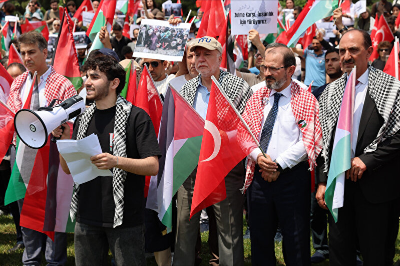 Açıklamada, Doğu Türkistan’daki insan hakları ihlallerine de dikkat çekilerek tüm mazlum coğrafyaların sesi olunması gerektiği ifade edildi. “Gazze’de insanlar, yalnızca bombalarla değil sessizlikle de öldürülüyor. Bu sessizliğe razı değiliz” sözleriyle, toplumsal duyarlılık çağrısı yapıldı. Yürüyüş, “Adalet için ses ver” mesajıyla sona erdi.