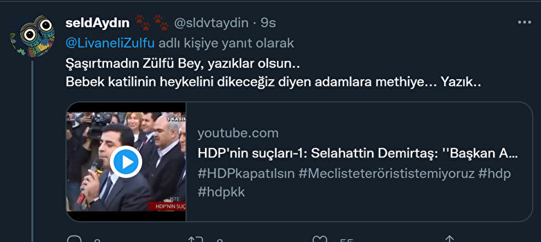 Bir dönem CHP’de siyaset yapan sanatçı Zülfü Livaneli, Twitter hesabından yaptığı paylaşımla sosyal medyada gündem oldu. Terör soruşturmalarından cezaevinde bulunan HDP'nin eski Eş Başkanı Selahattin Demirtaş'ın Efsun adlı kitabını paylaşan Livaneli, "Edebiyatımızın usta kalemi" ifadelerini kullandı. Çok sayıda sosyal medya kullanıcısı, Livaneli'yi topa tuttu.