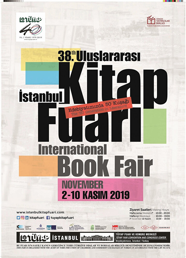 Her okurun heyecanla beklediği Uluslararası İstanbul Kitap Fuarı 38. kez başladı. TÜYAP Fuar Merkezi’ndeki etkinlikte imza günü, söyleşi, panel, atölye, şiir dinletisi, sergi gibi birçok etkinlik kitapseverleri bekliyor. Fuarın bu yılki onur yazarı 50 Kuşağı’nın emektar kalemi Adnan Özyalçıner. Ana tema ise “Edebiyatımızda 50 Kuşağı”. Fuarın bu yıl ilk defa düzenlenen “İlk Kitabım TÜYAP’ta” etkinliği ise ilk kitapları yayınlanan yazarları okurla buluşturuyor. Okurlar fuar sayesinde hem eski kuşakları tanırken bir yandan da oluşmakta olan yeni kuşaklara şahitlik ediyor.