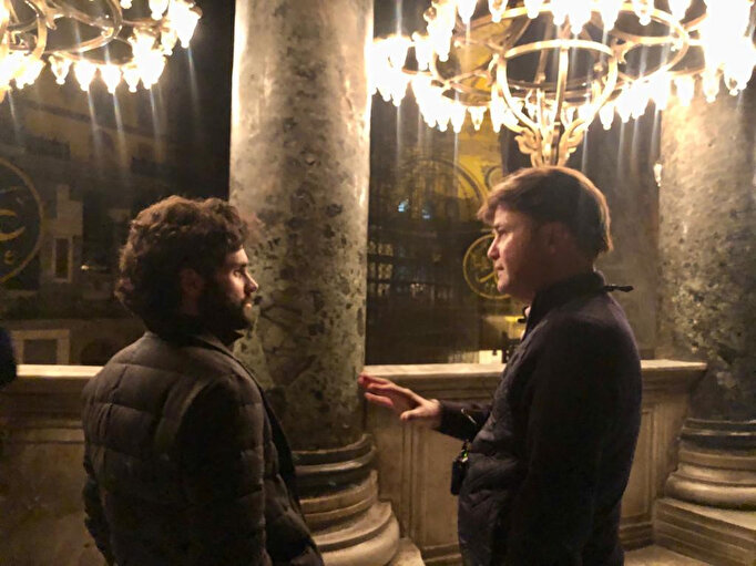 Bir ödül töreni için Türkiye'de olan ünlü oyuncuyu Ayasofya'da tarihçi ve seyahat yazarı Saffet Emre Tonguç gezdirdi.