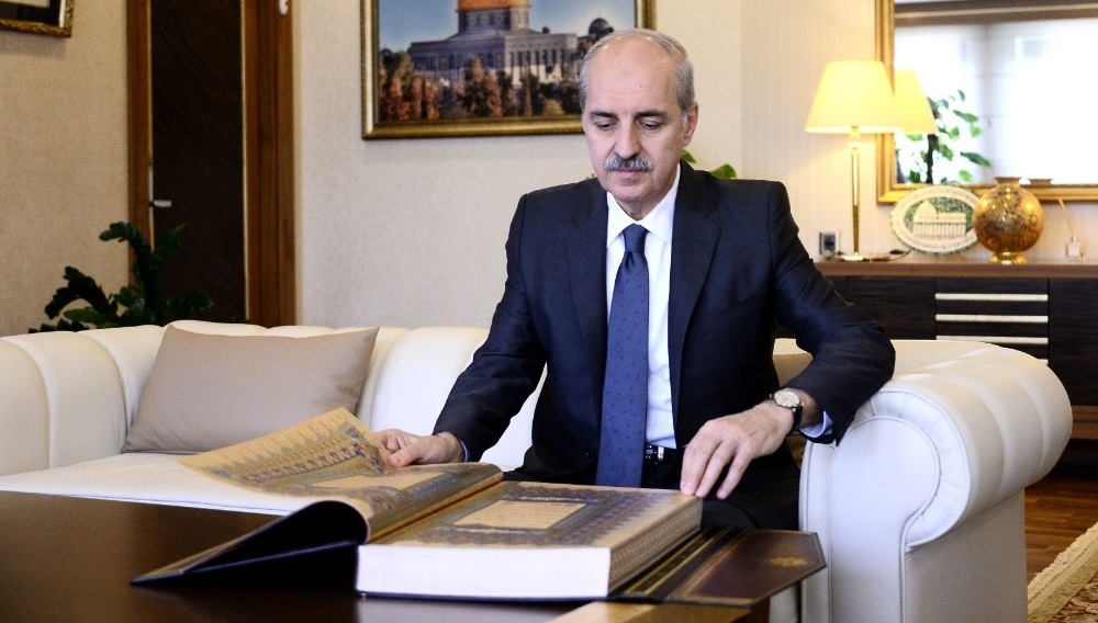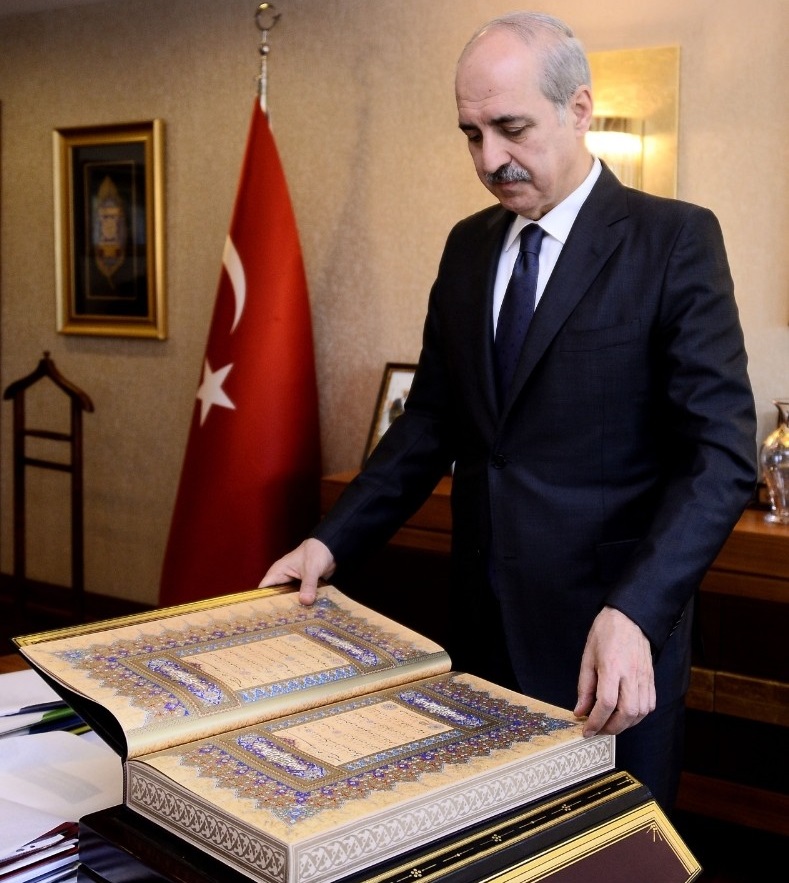 Kültür ve Turizm Bakanı Numan Kurtulmuş, özenle tamamlanan Hasan Rıza Efendi hattı Mushaf-ı Şerif’in bir numaralı tıpkıbasımını Cumhurbaşkanı Recep Tayyip Erdoğan’a takdim edecek. Bakan Numan Kurtulmuş, ilerleyen günlerde Meclis Başkanı İsmail Kahraman’a sunacağı eseri dün Başbakan Binali Yıldırım’a da takdim etti.