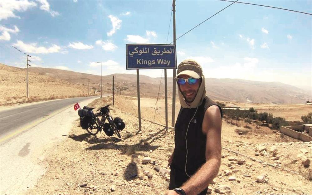 İngiltere'den İspanya'ya uçakla, savaş çıktığı için Libya sınırı kapatılmıştı, Tunus'tan Ürdün'e uçakla, bir de Bahreyn'den Ürdün'e uçakla. Bir de İspanya'dan Fas'a Cebeli Tarık'ı geçmek için gemi kullandım. Onun dışında hep bisiklet üstündeyim.