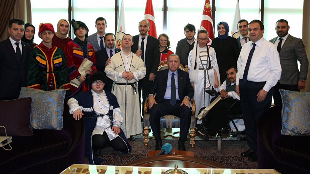Cumhurbaşkanı Recep Tayyip Erdoğan, "3 Aralık Dünya Engelliler Günü" dolayısıyla AK Parti Genel Merkezi'nde engelli sporcu, sanatçı, zanaatkarlar ile aileleriyle bir araya geldi