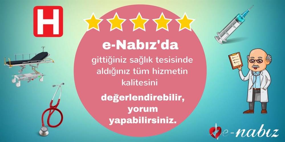 e-Nabız sistemini kullanarak gittiğiniz sağlık tesisinde aldığınız tüm hizmetin kalitesini değerlendirilebilir, yorum yapabilirsiniz. Yaptığınız değerlendirmeler hastane yöneticileri ile paylaşılmaktadır.