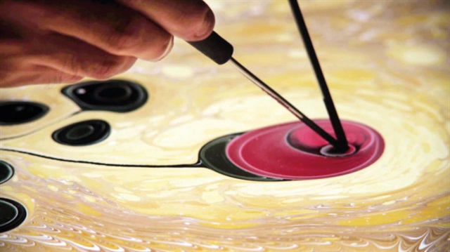 rinde fonda ebruyu kullanan Matos, farklı resim tekniklerini ve yağlı boyayı bu sanatla harmanlıyor. Ebru yaparken dünyanın