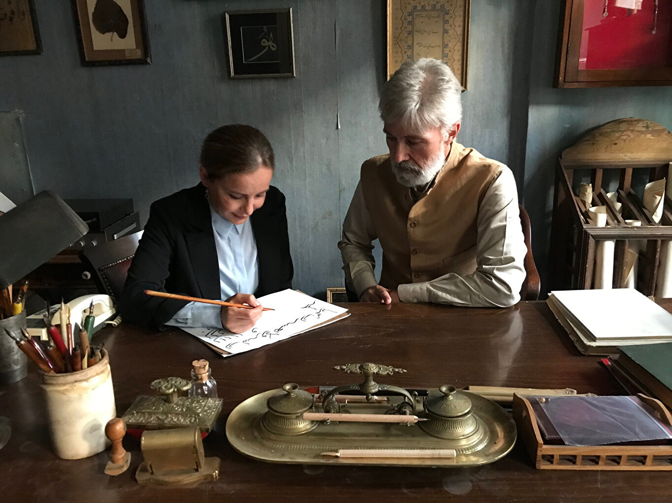 Hattı çok severdim, merakım da vardı ama elime hiç kamış kalemi almamıştım. Murat bey bizi aldı, iki ay çalıştırdı ve bu çalışmalarımız film aşamasında da devam etti. Hala da devam ediyor.