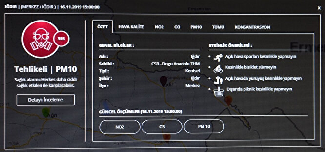 Çevre ve Şehircilik Bakanlığı Sürekli İzleme Merkezi (SİM) ölçümlerine göre, Türkiye’de Hava kirliliği en yüksek İl 355 olarak Iğdır görüldü. Piknik, yürüyüş, açık hava sporları ve bisiklet sürülmemesi konusunda vatandaşlar kesinlikle uyarıldı.