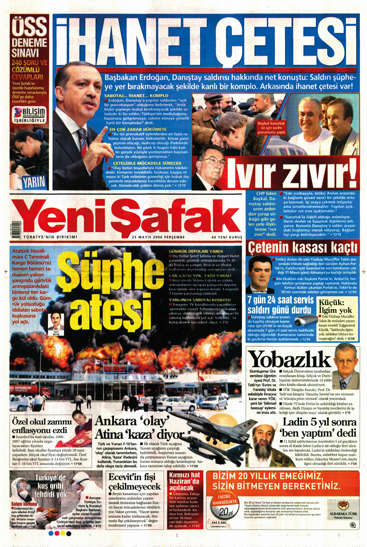 Yeni Şafak, saldırının kanlı bir komplo olduğunu “İhanet Çetesi” başlığıyla duyurdu. Dönemin Başbakanı Recep Tayyip Erdoğan’ın “Türk milletinin güvenliği için hukuk dışı örgütlerle mücadelemiz kararlılıkla devam edecektir. Demokratik yoldan dönüş yoktur” açıklamaları da dünden bugüne değişmeyen bir gerçek oldu.