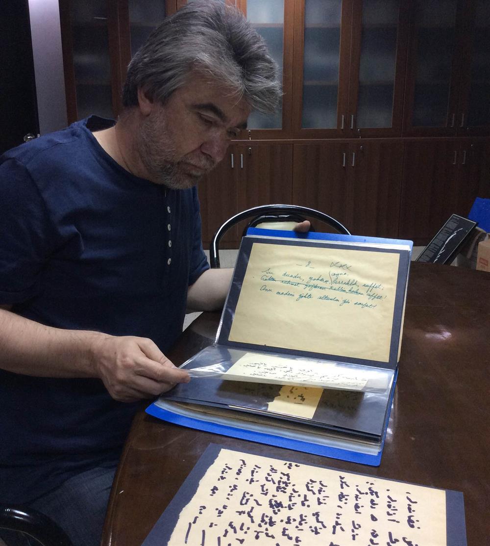 Suat Ak'la Büyük Doğu Yayınları'nın arşiv bölümünde buluştuk. Üstad'a ait el yazısı metinler, şiirler, fotoğraflar sanki ilerleyen saatlerde Üstad'ı merdivenlerden inecekmiş gibi canlı kılıyordu. Yaşamış ve ölmüş de denilemezdi zaten Üstad için, bir fırtına gibi esmişti. Uzun yıllar Üstad'ın oğlu Mehmet Kısakürek'le birlikte çalışan Suat Ak, Büyük Doğu editörlüğünün yanı sıra Üstad Necip Fazıl'dan kalan kıymetli hatıraların da muhafızı aynı zamanda. Konuşmamıza başlarken “Üstad'ın daha önce hiç görülmemiş satırları bunlar” diyerek Üstad'ın o meşhur çocukluk fotoğrafını uzatıyor. Fotoğraf biliniyor ama arkasındaki el yazısı satırlar hiç yayınlanmadığı gibi hiç görülmemiş de bugüne kadar. Üstad bizzat imzalayıp dayısına hediye etmiş bu fotoğrafı. Daha 10 yaşında. Şöyle yazmış merhum Üstad: