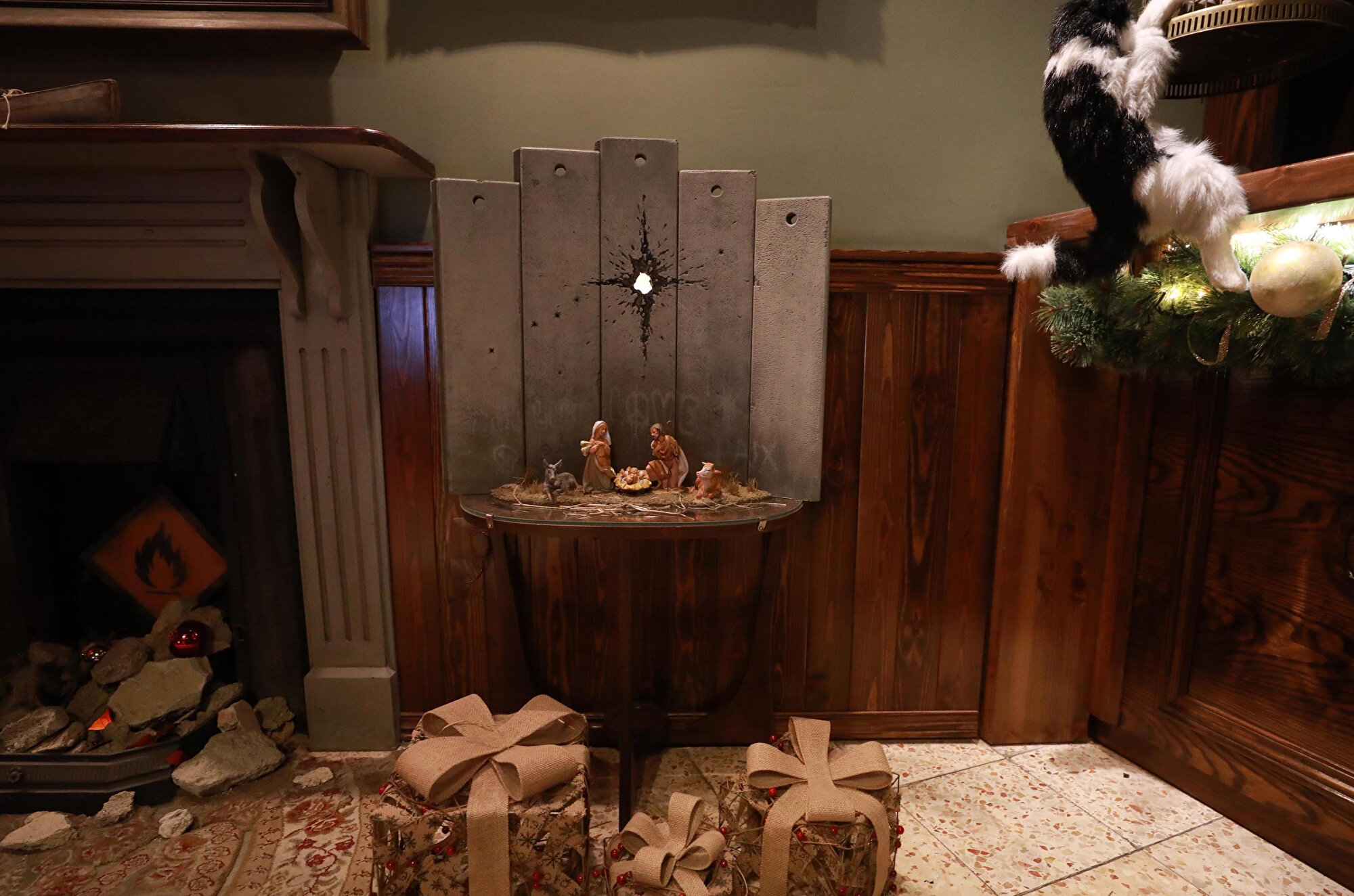 Ayrım Duvarı'yla çevrili otelin işletmecisi Vessam Selsa yaptığı açıklamada, Banksy'nin söz konusu çalışmasını Noel kutlamaları dolayısıyla otelde sergilendiğini söyledi.
