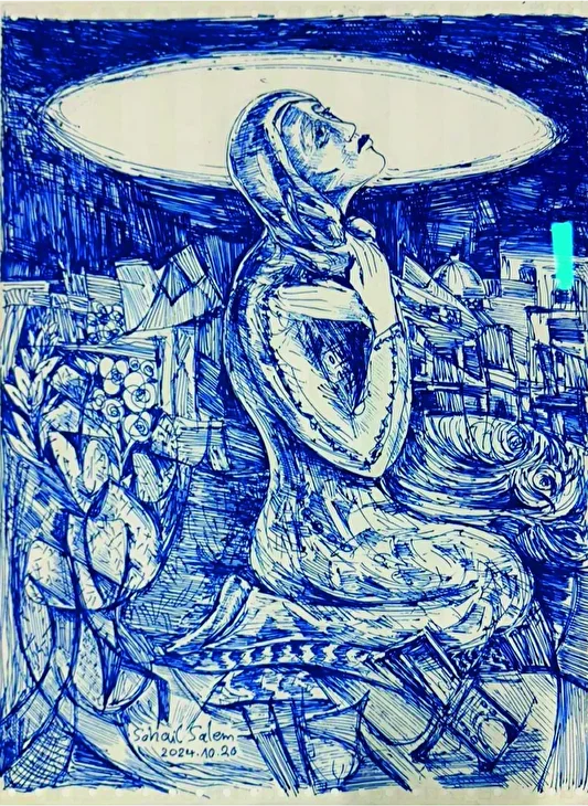 Filistin’de İsrail’in yakıp yıktığı evler, öldürülen çocuklar, dağılan ailelerin acıları defterlerdeki görsellere yansımış. Bu görsellerin yanında sanatçının bir de İmdat Çığlığı başlıklı yazısı dikkat çekiyor. Bu yazıda resimlerin hangi şartlarda nasıl çizildiğini anlatan sanatçı sessiz bir çığlık atmış. “Okul defterlerine tükenmez kalemle çizimler yapmak. Söndürülemeyecek bir ışığı beklemek” gibi diyen sanatçı ardından şöyle devam ediyor: “Titreyen elimle duraksamadan çizmeye ve çizimlerimi ne zaman imkan olursa sosyal medyada paylaşmaya gayret ediyorum. Üzerine çizdiğim soğuk mavi sayfa dostlarımın etkileşimiyle ısınıp sıcacık bir ateşle parlıyor. Çizimlerim dünyaya gönderdiğim bir bildiri ve imdat çağrısı. Dostlara halen hayatta olduğumu, dostların akrabaların ve komşuların gözden kaybolduğunu güzel Gazze’nin yok olduğunu haber ediyorlar.”