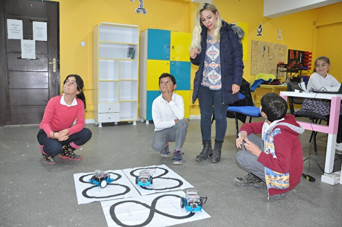 - En çok Mbot robotlarıyla çalışıyoruz. Daha sonra Lego setleri ve Arduino setlerimize geçeceğiz. Burası bir köy okulu, çoğu çocuğun evinde teknolojiye dair çok az şey vardır. Bu robotik kodlama atölyesiyle de onların sahip olmadığı yeterliliklerini kazandırmış oluyoruz. Projeye özellikle kaymakamımız, ilçe milli eğitim müdürümüz, okul müdürümüz başta olmak üzere destek veren herkese teşekkür ederiz.”