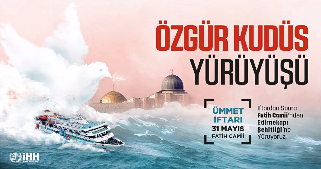İHH İnsani Yardım Vakfı’nın çağrısıyla on binlerce Filistin gönüllüsü, 31 Mayıs 2019 Cuma günü Mavi Marmara katliamının yıl dönümünde düzenlenecek olan Özgür Kudüs Yürüyüşü için Fatih Camii’nde Ümmet İftarı’nda bir araya gelecek. İftarın ardından meşalelerle Edirnekapı Şehitliği’ne yürünecek.