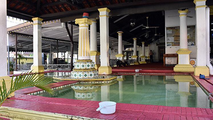 Caminin mihrabı ise renkli görünümüyle ayrı bir estetik örneği sergiliyor. Hindu kültüründen etkilenerek yapılan ahşap oymalı mihrap, hasar görmemesi için düzenli olarak bakıma tabi tutuluyor.