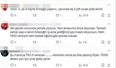 Sosyal medya kullanıcılarının restoran deneyimlerini paylaşmasının ardından başlayan tartışmalar büyüyerek devam etti. Paylaşılan görsellere göre, sadece iki adet mantı parçasından oluşan “Keşli Mantı” tabağının 700 TL olması büyük eleştiri aldı.