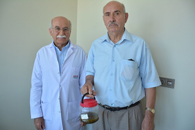 Hastamızın ameliyatını laparoskopik olarak tamamladık. Safra kesesinin içerisinden sayılamayacak kadar çok sayıda 1 ila 3 mm büyüklüğünde taşlar çıkardık. Çok fazla miktardaydı taş. Ben 35-40 senedir bu işi yapıyorum, ilk defa bu kadar çok miktarda taşı gördüm. Hastamızın ameliyat sonrası dönemi de iyi seyretti. Ameliyattan 24-36 saat sonra karaciğer fonksiyonları yüzde 50 ila 70 oranında düzeldi. Sarılık testleri yüzde 50 oranında düzeldi. Hastamızın durumu da iyi şu anda” dedi.