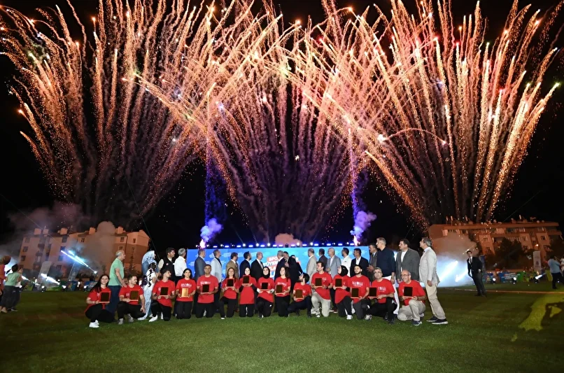 Yaz Spor Okullarında antrenörler tarafından yetenekleri keşfedilen öğrenciler branşlarında lisanslı müsabık sporcu haline geliyor. Selçuklu Belediyespor Kulübü bünyesinde çeşitli branşlarda Türkiye’yi başarıyla temsil eden birçok milli sporcu, spor okullarından yetişerek önemli başarılara imza atıyor. Bu dönem 15 farklı branşta 14 bin 759 öğrencinin eğitim aldığı Yaz Spor Okulları görkemli bir kapanış programı ile tamamladı. Selçuklu Belediyesi Stadyumu’nda gerçekleştirilen programda havai fişek, ışık gösterileri ve DJ performansıyla adeta festival alanı oluştu. Etkinlikte yaz spor okullarında eğitim gören öğrenciler ve aileleri unutulmaz bir gece yaşadı.