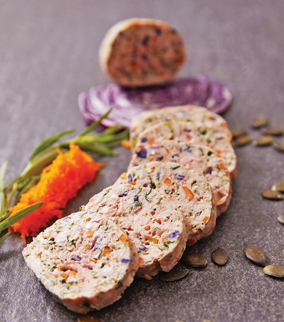 Bütün malzemeyi blender da kıyma kıvamına gelesiye kadar çekiniz. Tüm malzemeleri karıştırın ve yoğurun, rulo hale getirip yanmaz streçle sarın, 180 derecede 25 dakika pişirin. Soğutup küp doğrayın.