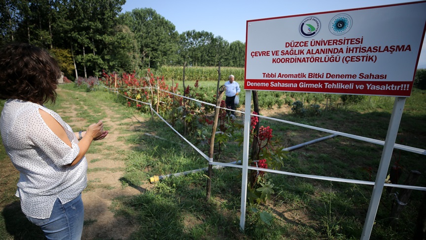 Sağlık ve çevre alanında pilot üniversite olan Düzce Üniversitesi bünyesindeki akademisyenler ile çiftçilerin işbirliğiyle 118 hektarlık alanda tıbbi ve aromatik bitki yetiştiriliyor.