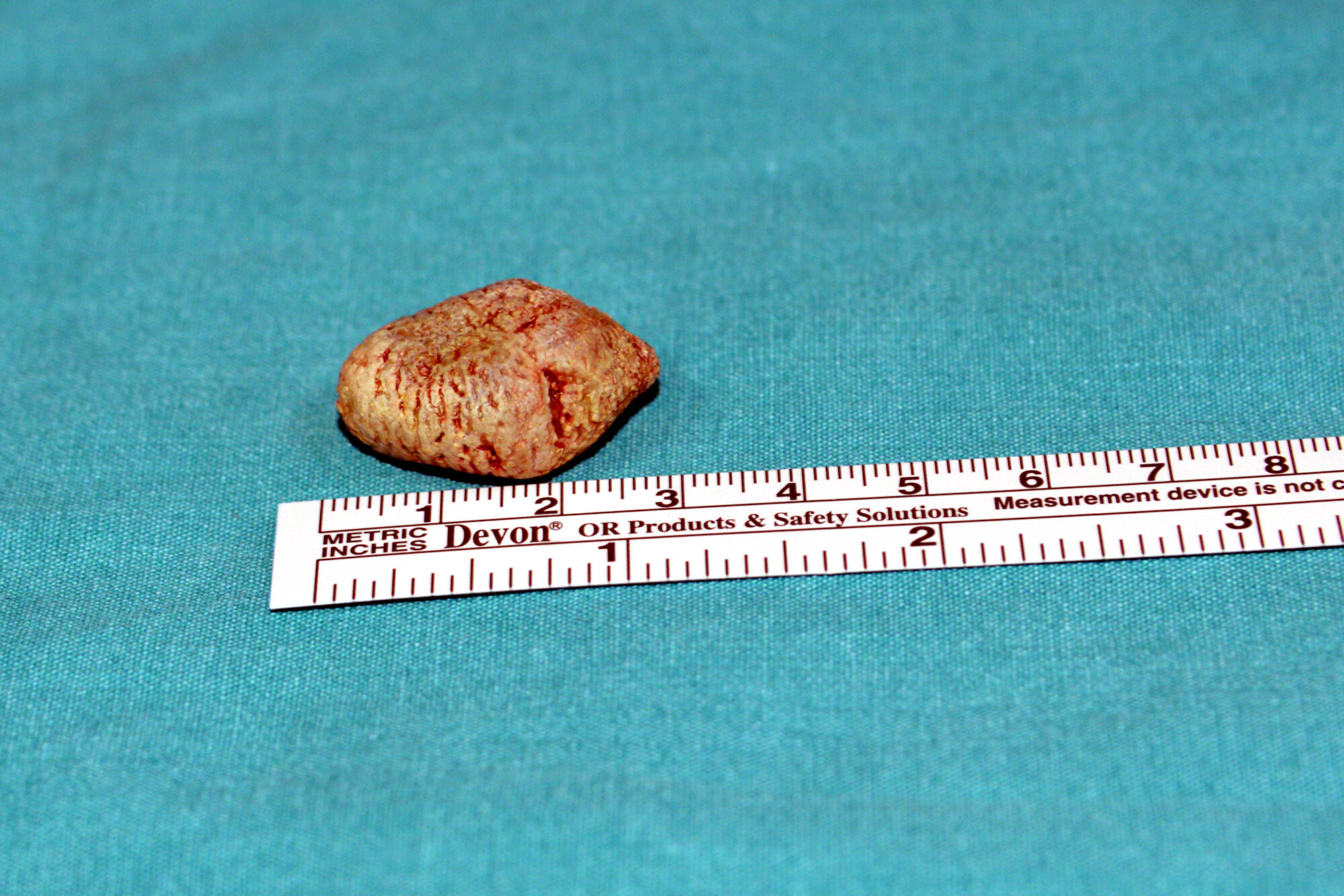 - "Hafta içerisinde hastamızı ameliyata aldık ve daha önceki radyolojik değerlendirmelerde çok fazla görme şansımız olmadığı için büyüklüğü açısından sürpriz bir şekilde, tahminimizden çok daha büyük dev tükürük taşı çıkardık. Hastamızın şikayetleri rahatladı ama çıkan taş açıkçası beni de ekibimi de heyecanlandırdı, şaşırttı. Çünkü şu ana kadar çıkarttığımız en büyük tükürük bezi taşlarından biriydi. Taşı çıkarttıktan sonra bir tarama yaptık. Taramalarda şu ana kadar dünyadaki yayınlanan en büyük taşın 7.5 santimetre olduğunu gördük. 7, 6.5, 4.5, 4 ve 3 santimetrelik taşlar var. Bizim taş da büyüklük açısından dünyadaki ilk 10 taş arasına giriyor gibi gözüküyor."
