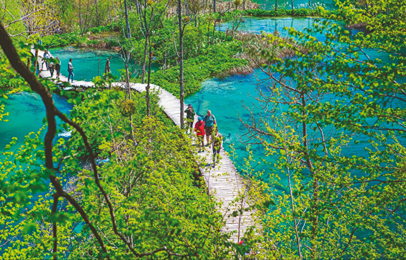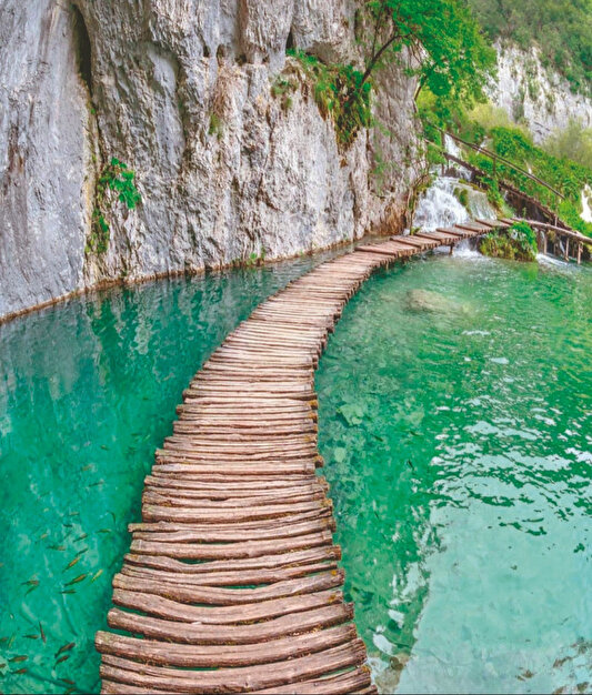 Manavgat, Kurşunlu, Düden, Erfelek, Aydınpınar, ülkemizde ne kadar şelale varsa hepsini ve daha fazlasını, yüzlercesini, katman katman döküldükleri on altı gölle birlikte, üç yüz kilometrekarelik kocaman bir doğal parkta gördüğünüzü düşünün. Göllerin içlerindeki mineral yapılarına ve ışığa bağlı olarak zümrüt yeşilinden, gök mavisine, cam göbeğine, griye kadar renk geçişlerine sahip olduğu, sık ve gür ağaçlarla kaplı yemyeşil bir ormanın içerisinde bir park burası. 1949 yılında açılmış, 1979 yılında UNESCO Dünya Kültür Mirası Listesi’ne alınmış, Hırvatistan’ın en eski doğal parkı.