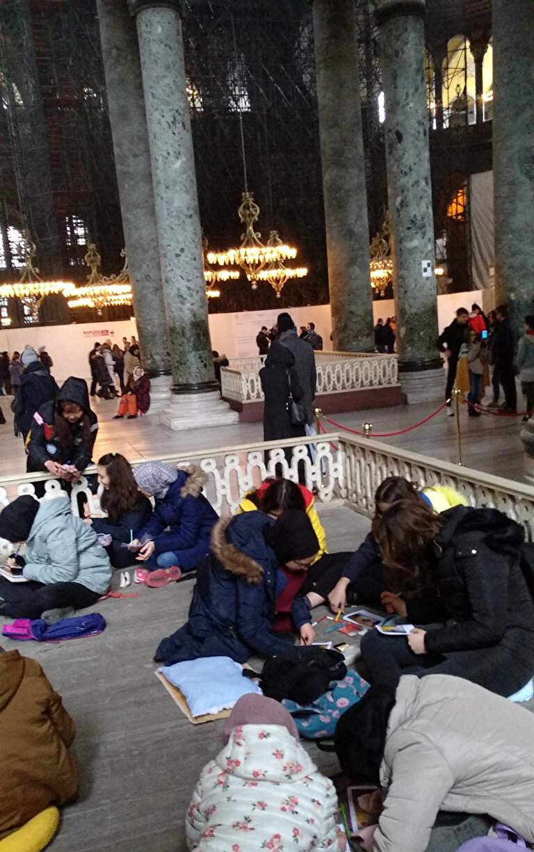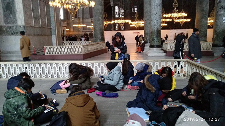 Üsküdar Derya Öncü Koleji 7'inci sınıf öğrencileri, Sosyal Bilgiler Öğretmeni Fatma Çil Gedik ile Ayasofya Müzesi'ni ziyaret ettiler. Gezi bittikten sonra yaklaşık 85 yıl önceki gibi Ayasofya'nın içinde ders yaptılar. Gedik'in Twitter hesabından yaptığı paylaşımlar bir ilki gözler önüne serdi.