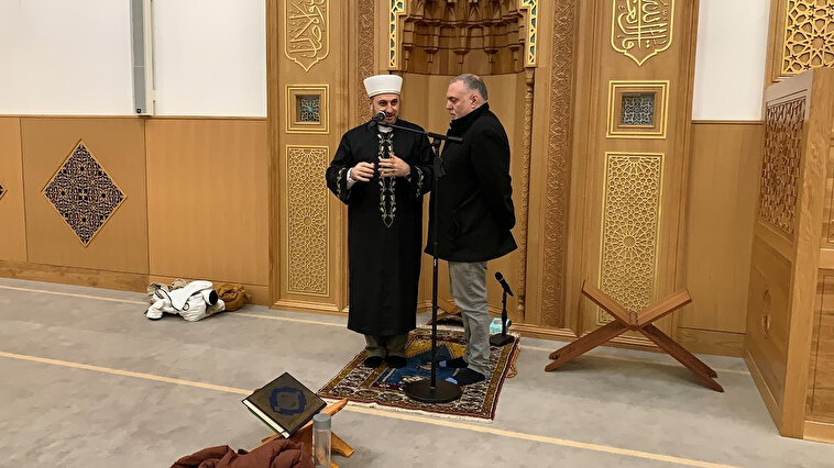Carvalho, açılış çalışmaları için bulunduğu camide namaz sonrası Türk imam Ali Tos'la sohbet etti.