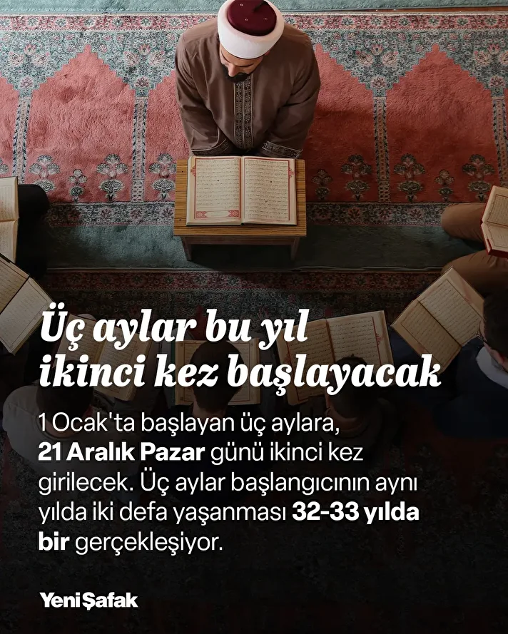 Diyanet İşleri Başkanlığı Din İşleri Yüksek Kurulu Başkanlığının kameri ay hesaplamalarına göre, recep, şaban ve ramazanı kapsayan üç aylar, bu yıl ikinci kez 21 Aralık Pazar günü başlayacak. Üç aylar başlangıcının aynı yılda iki defa yaşanması 32-33 yılda bir gerçekleşiyor.