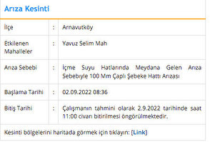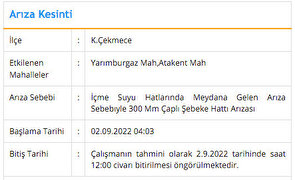 İstanbul'da 2 ilçeye hatlarda yaşanan arıza nedeniyle su verilemiyor. Onarım çalışmaları devam ederken, İSKİ'den su verilemeyecek ilçeler ve mahaller tek tek açıklandı.