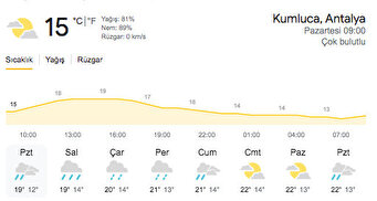 Yağışların; sabah saatlerinde Antalya ve Isparta ile Burdur'un doğu ilçelerinde, gece saatlerinde Muğla çevreleri ile Aydın'ın kıyılarında yerel kuvvetli olması beklendiğinden yaşanabilecek sel, su baskını gibi olumsuz şartlara karşı dikkatli ve tedbirli olunmalıdır. Parçalı ve çok bulutlu, aralıklı sağanak ve gök gürültülü sağanak yağışlı geçeceği tahmin ediliyor. Yağışların; sabah saatlerinde yerel kuvvetli olması bekleniyor.