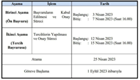 2. Atama yapılacak alan ve kontenjan sayıları, tercih başvurularının ilk günü olan 12.04.2023 tarihinde “personel.meb.gov.tr” adresinde yayımlanacaktır.