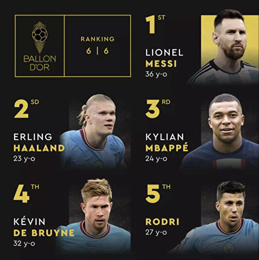 Katar'ın ev sahipliği yaptığı FIFA 2022 Dünya Kupası'nda Arjantin Milli Takımı'yla şampiyonluğa ulaşan 36 yaşındaki Messi, kariyerinde 8. kez bu ödülün sahibi oldu. Oylamada Norveçli Erling Haaland 2'nci, Fransız Kylian Mbappe 3'üncü sırayı aldı.