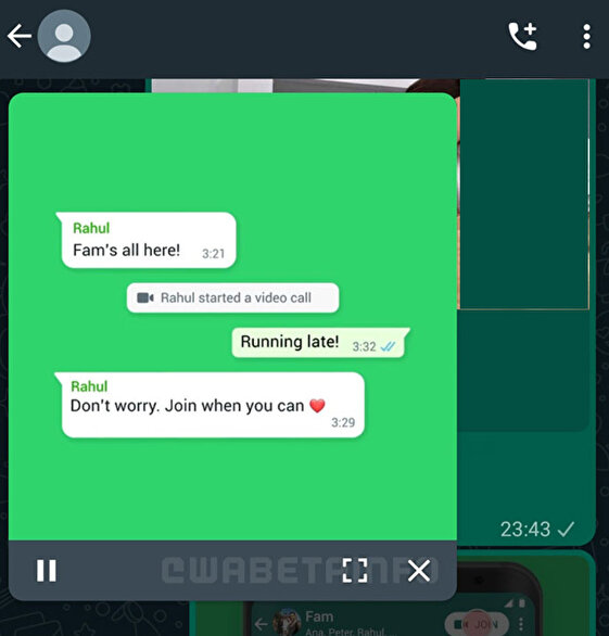 özelliği, ekranın bir kısmında video izlemeye imkan tanıyor. Yani bu sayede WhatsApp'tan gelen