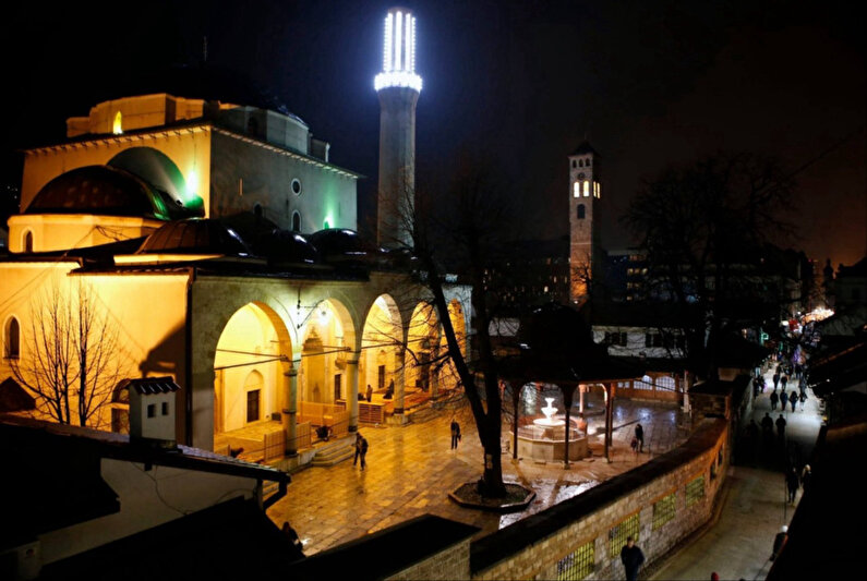 Osmanlı döneminde inşa edilen Gazi Hüsrev Bey Cami, Kurşunlu Medresesi, Moriça Han gibi yapılar hâlâ ayakta. Avusturya-Macaristan İmparatorluğu döneminde yapılan Latin köprüsü, Belediye Binası (Vijećnica) ve katedraller ise Batı’nın izlerini taşıyor. Yugoslav döneminde sosyalist mimari öne çıkarken, 1990’lardan sonra yeniden özgün kimliğini bulmaya başladı. Şehirde yürürken aynı sokakta cami, sinagog, Katolik ve Ortodoks kiliseleri görebilirsiniz. Bu mimari mozaiğin içinde, kültürler arası barışın nasıl mümkün olduğunu sorgulamamak elde değil.