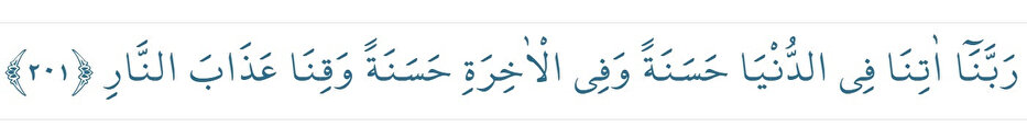 Rabbenâ âtinâ fi'd-dünyâ haseneten ve fi'l-âhireti haseneten ve kınâ azâbe'n-nâr. (el-Bakara 2/201)