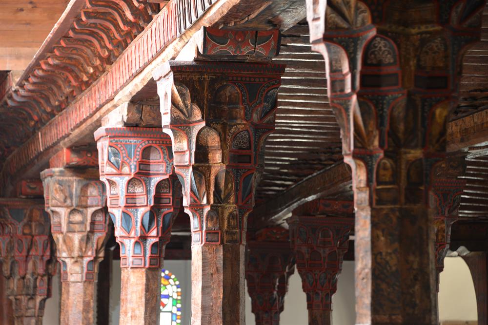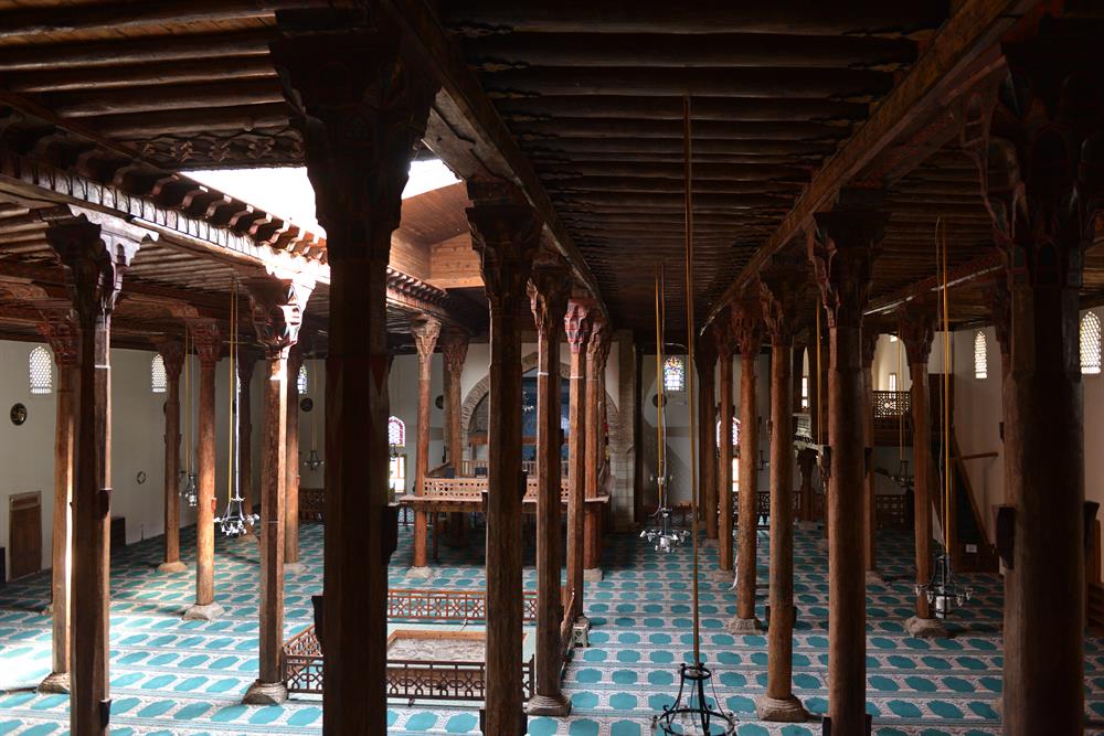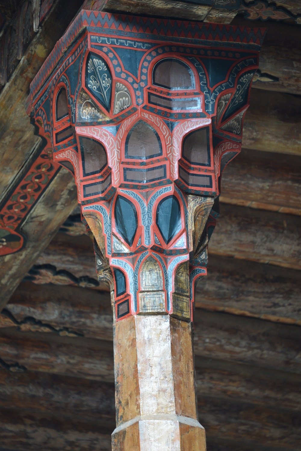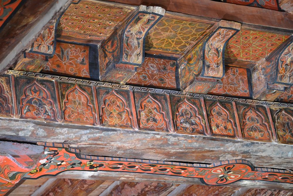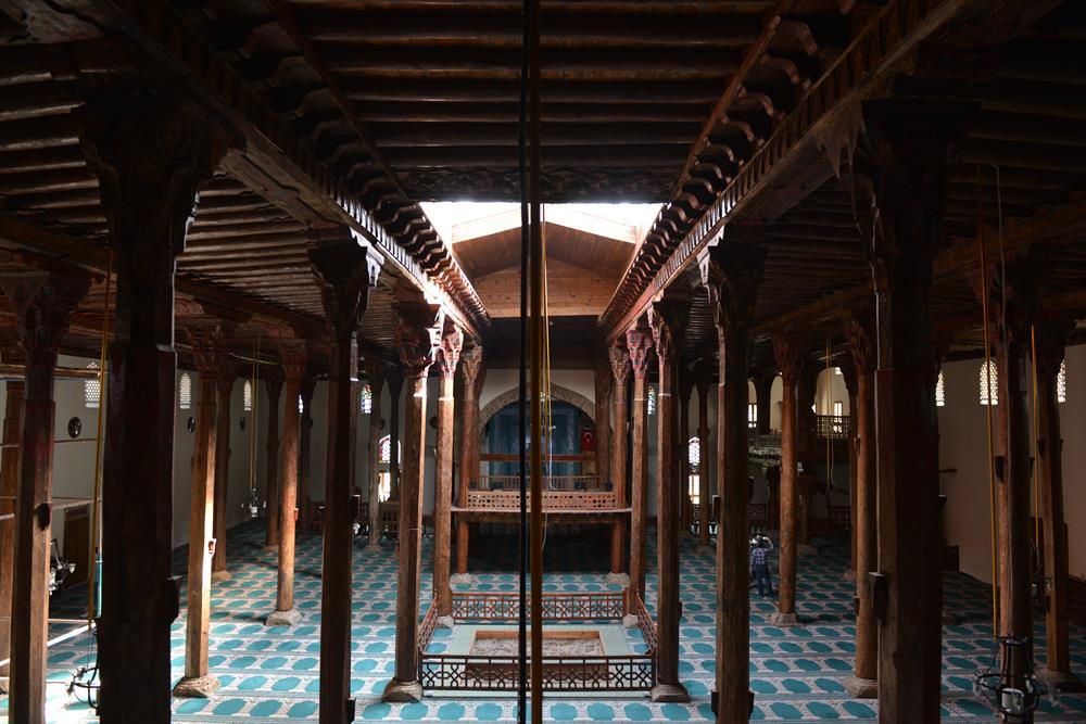 Ahşap süslemeler yoğun olarak sütun başlıklarında ve kirişlerde görülüyor.